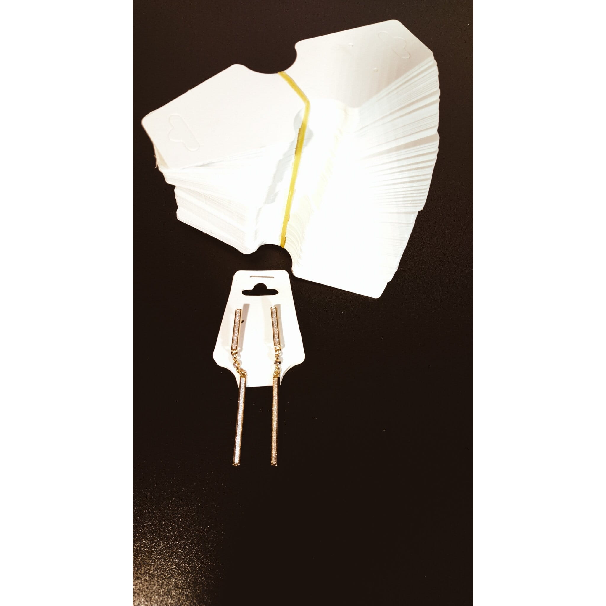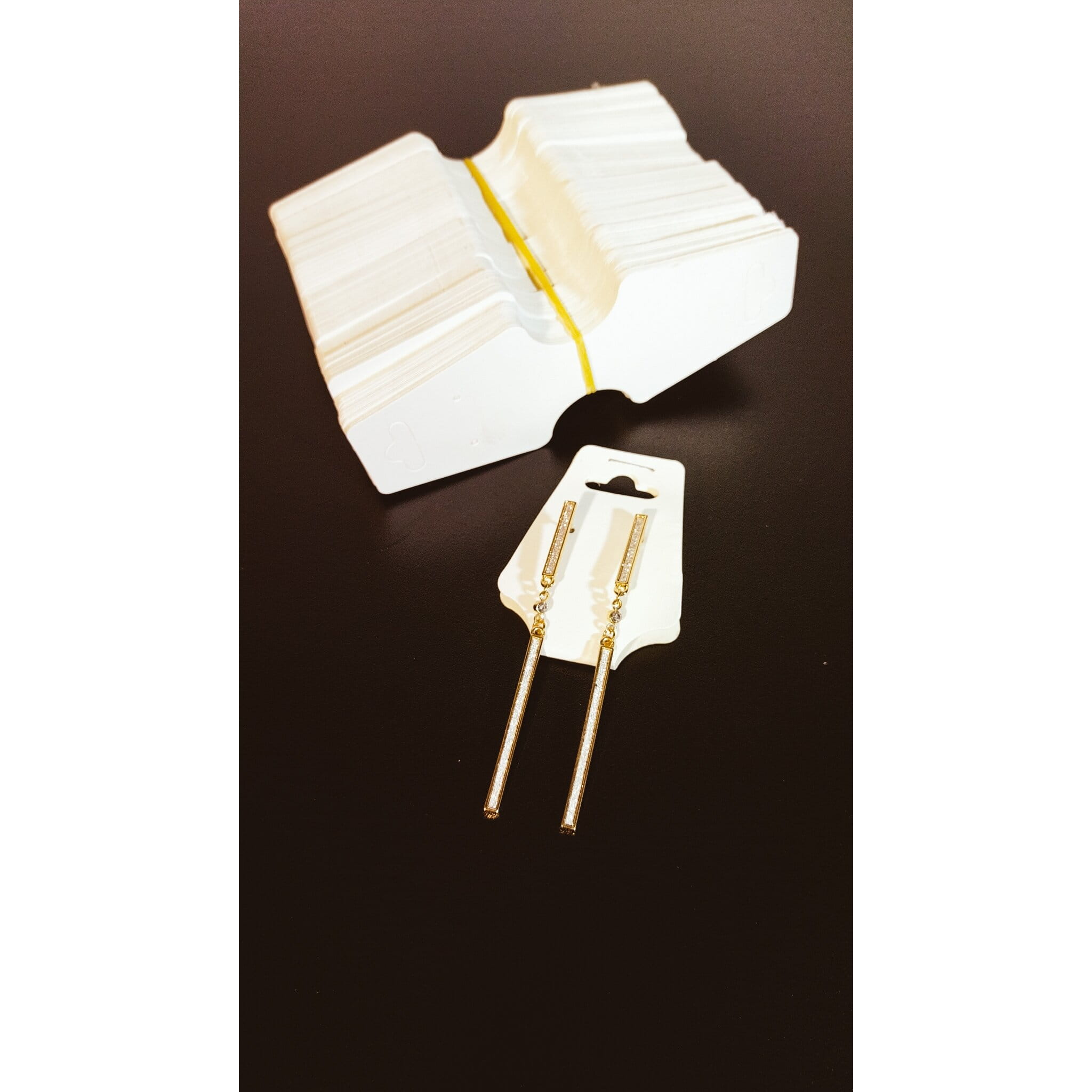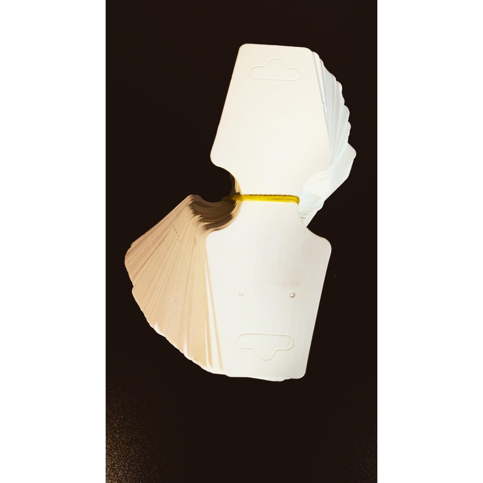 Papierowy półmatowy biały kartonik na biżuterię.Wymiary 45 mm x 125 mm. Opakowanie 200 szt.Mocowanie kartonika odbywa się za pomocą zszywacza.
