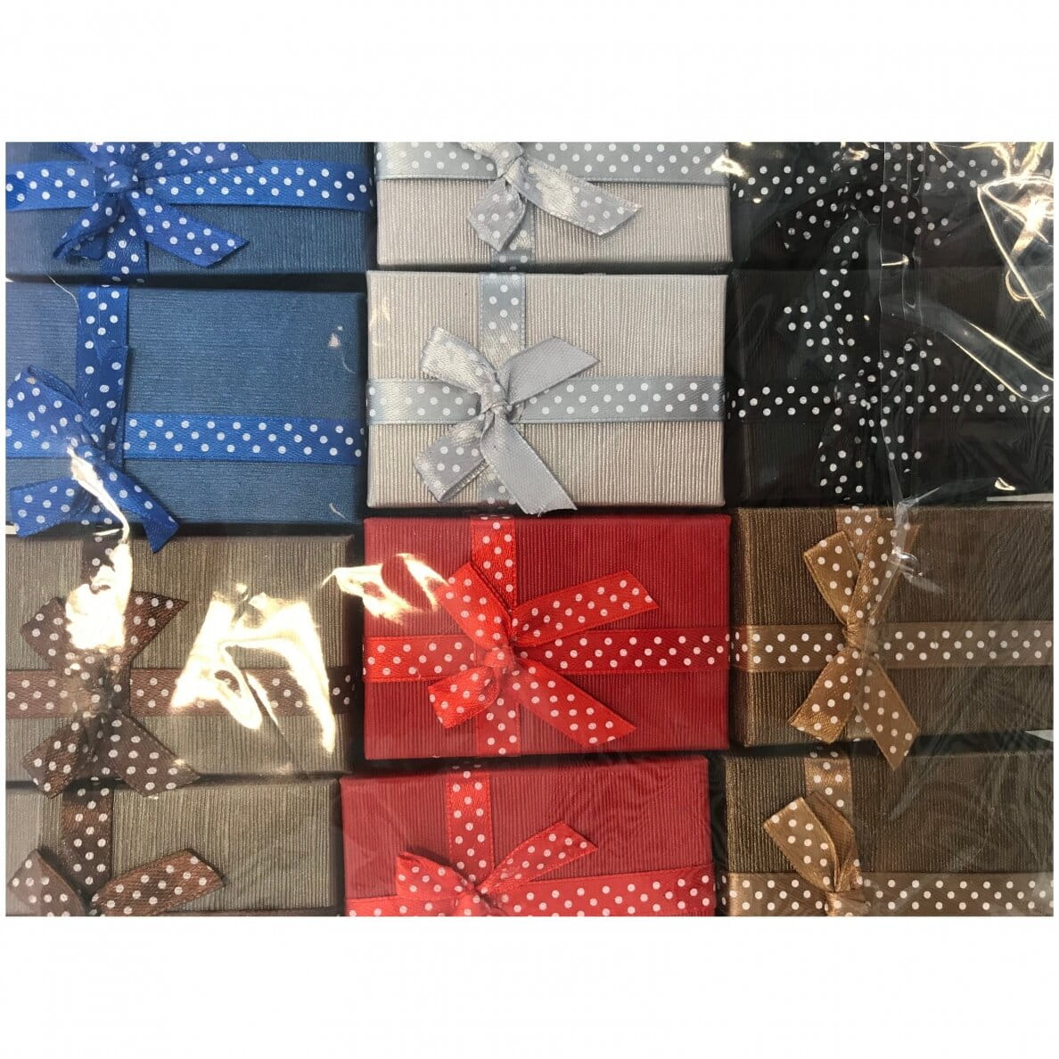 Kolorowe papierowe pudełko upominkowe 8 x 11 x 3 cm(h). Opakowanie 12 szt