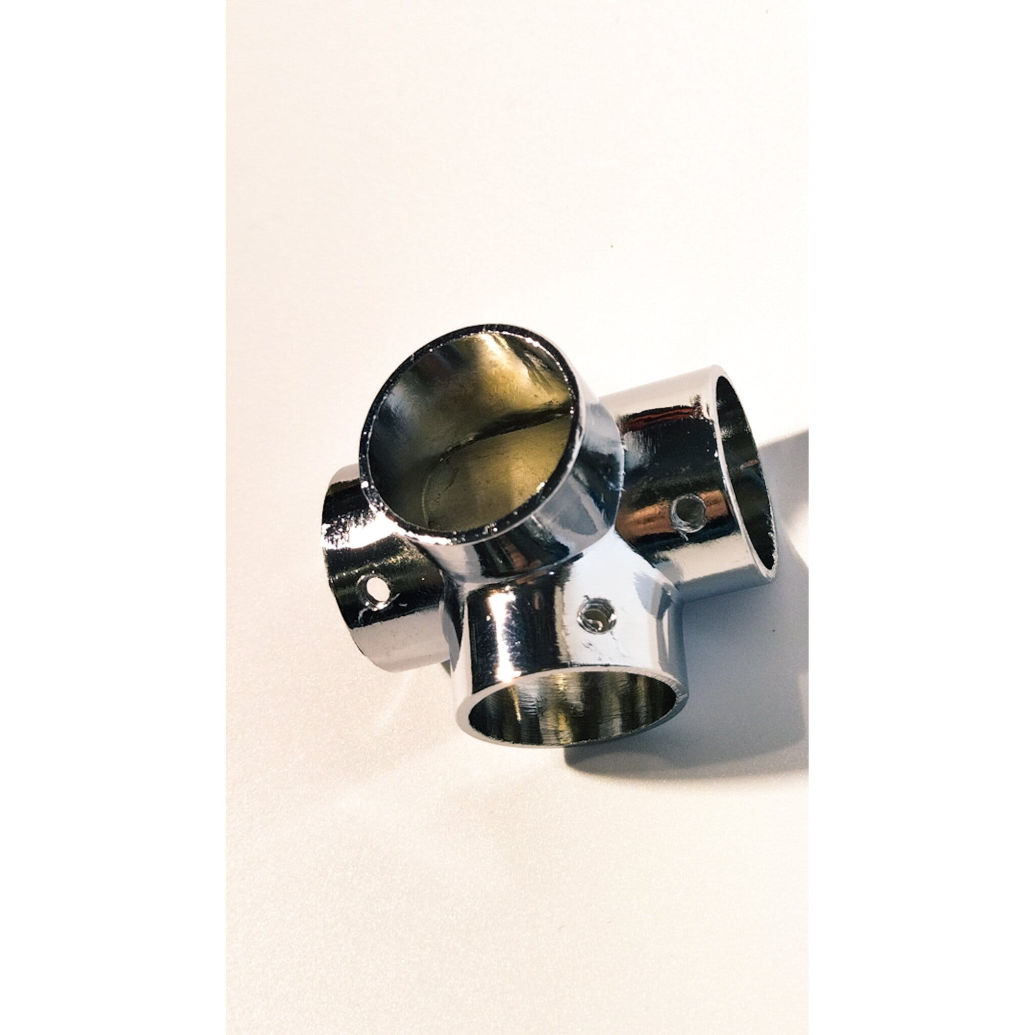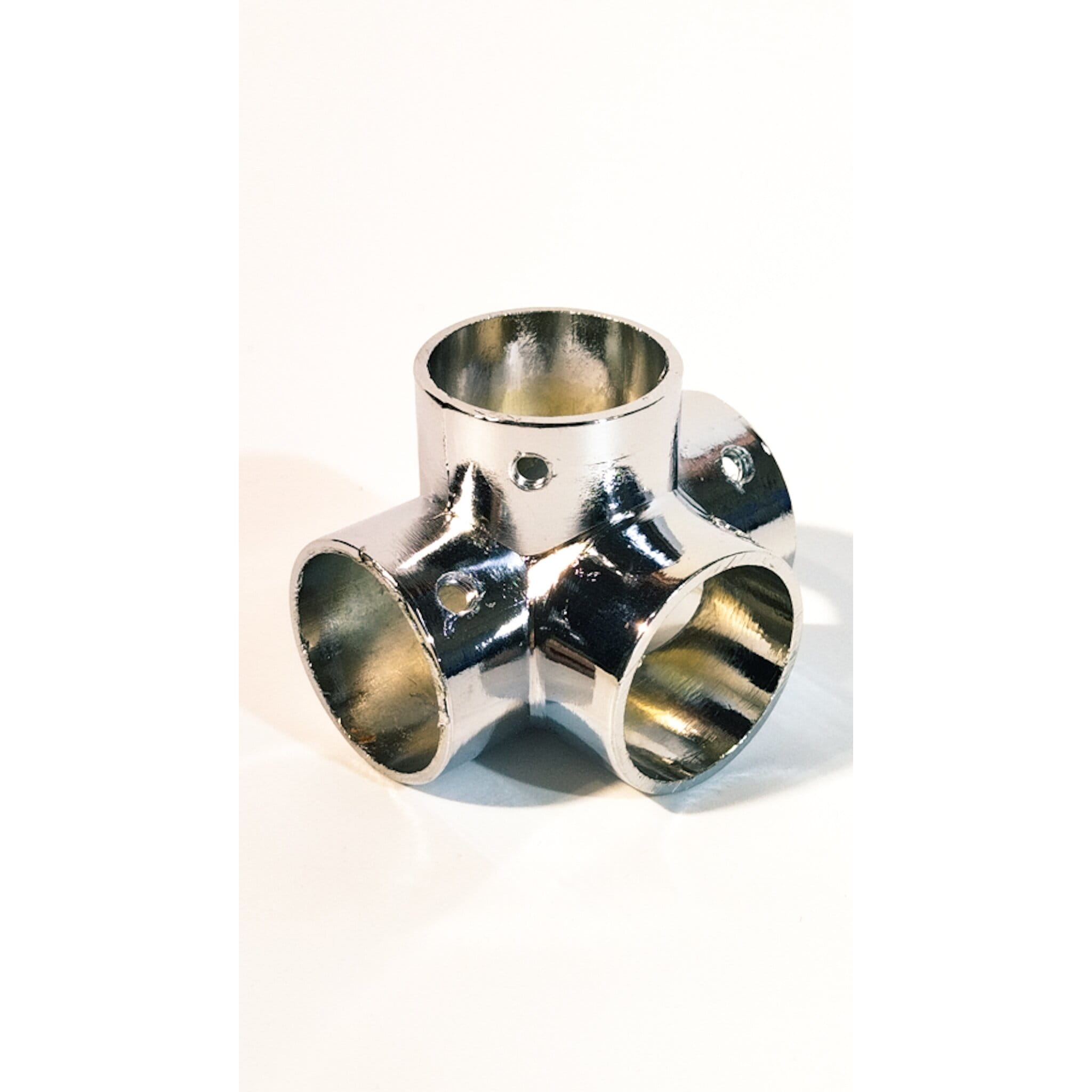 Złącze czteroramienne do rur 25 mm , metal, chrom.W długim kierunku rura możeprzejśćquot na wylot