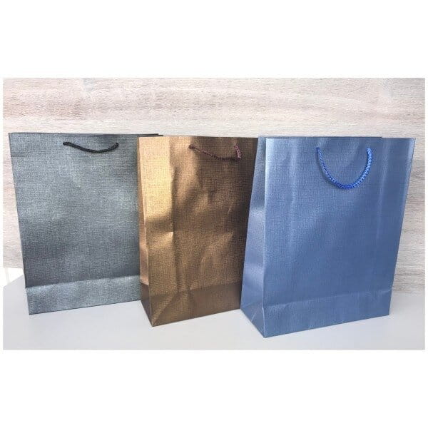 Karton jednowarstwowy. Torebki nadają się do pakowania prezentów i towarów, dostarczania żywności.Wymiary 26 x 32 cm(h), szerokość dna 10 cm.