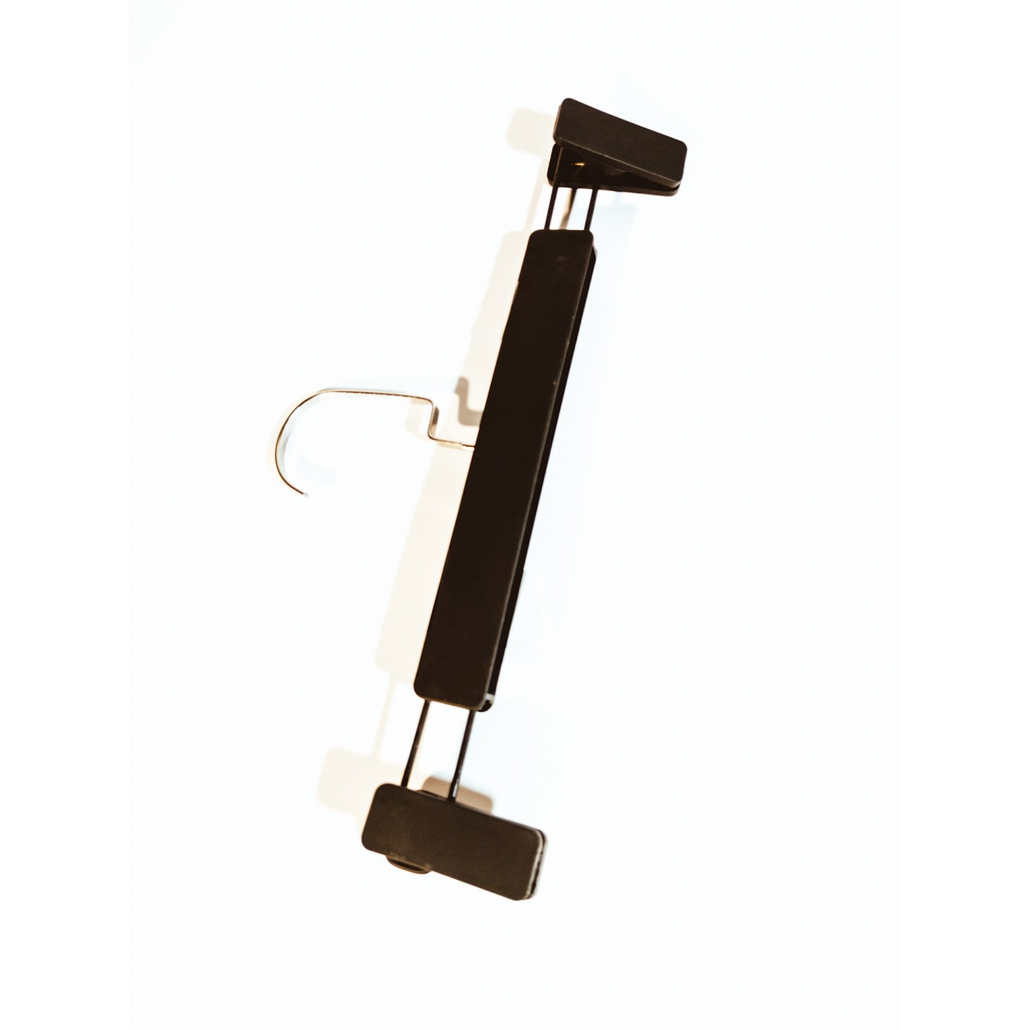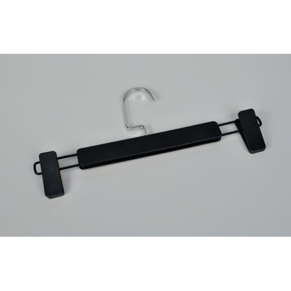 Wieszak na ubrania, spodnie, pasmanterię .Material - tworzywo sztuczne, antypoślizgowa powłoka na bazie gumy, 2 spinacze z uszczelką . Długość 31,5 cm